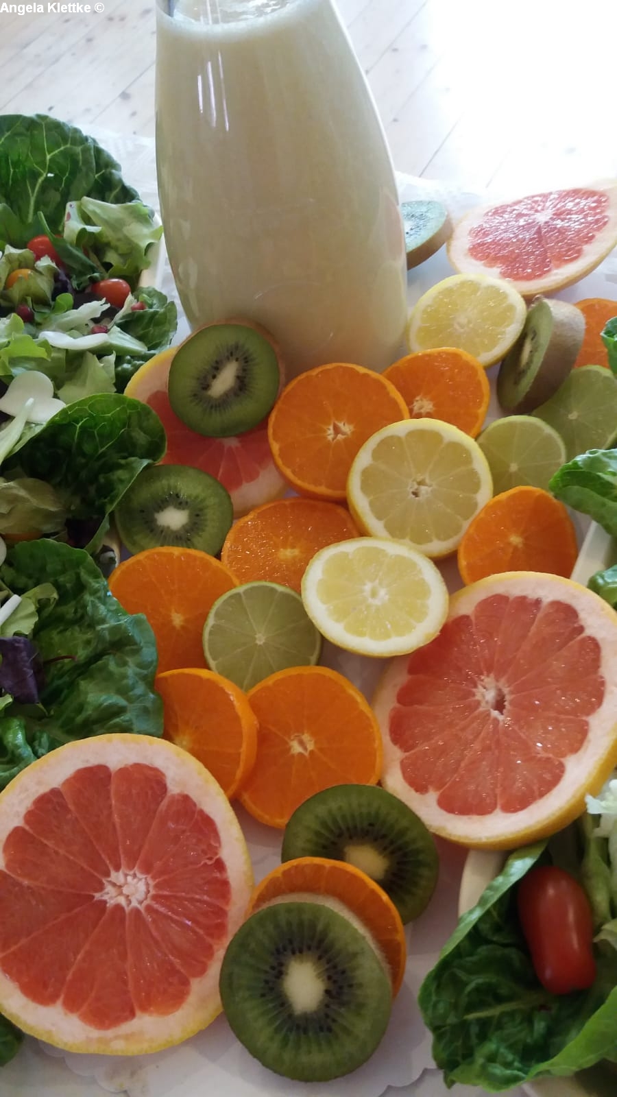 - Mettwurst aus Birgits Bauernladen, Spiegelei mit Bacon, Schnitzel mit Krautsalat